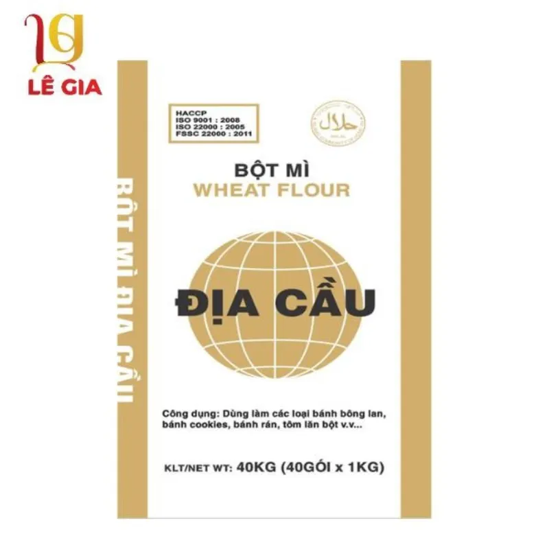 Bột mì Địa Cầu Vang dùng làm bánh bông lan các loại, bánh cookie, bánh bích quy, bánh xèo kiểu Tây, bánh crepe, bột chiên tẩm.