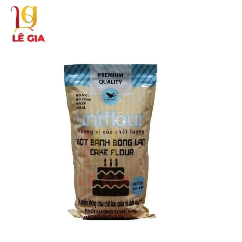 Bột mì Uni Bánh Bông Lan được nghiền từ loại lúa mì mềm chất lượng cao nhập khẩu từ Mỹ. Với những đặc tính nổi bật của sản phẩm như: màu bột trắng mịn, hàm lượng tro thấp…chất lượng bánh làm ra sẽ có cảm giác mềm mại khi ăn và luôn giữ được độ tươi ngon.